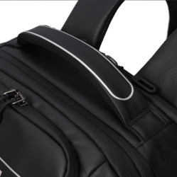 Вместительный рюкзак подойдет как для ежедневного использования, так и для путешествий. Внешняя и внутренняя ткани изготовлены из 100% переработанных и сертифицированных материалов RPET (переработанные пластиковые бутылки). Имеет два основных отделения, одно из которых со сдерживающими углами, где расположен дополнительный карман с RFID-защитой, отдел для смартфона и документов формата А4. Второй отдел для ноутбука 15.6", на молнии которого предусмотрена возможность разместить навесной замок. Передняя сторона оснащена карманом для вещей первой необходимости и светоотражающие элементы. На задней части рюкзака расположен карман для дождевика, планка для размещения изделия на крючек не деформируя и не повреждая ручки изделия. Также имеет боковые карманы для бутылки и зонтики.
