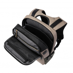 Продукт изготовлен из переработанных материалов с водоотталкивающим покрытием. Рюкзак идеально подходит для повседневного использования. Рюкзак идеально подходит для ежедневного использования. Оснащен вместительным отделением в котором есть отдел для ноутбука 15.4" и документов формата А4. В наружном кармане есть внутренний отдел для Power Bank с USB-портом, мини-офис и карман с RFID-защитой от мошенничества. Также, есть боковые карманы для зонта, бутылки и мелочей. На наплечных лямках расположена грудная стяжка, которую можно регулировать по высоте, что позволит лямкам быть зафиксированными и не препятствовать Вашим движениям. Рюкзак держит форму, обладает качественной фурнитурой и стильным дизайном.