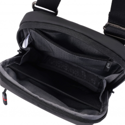 Продукт изготовлен из переработанных материалов с водоотталкивающим покрытием. Сумка кроcсовер, не большого размера, идеально подходит для повседневного использования, позволит освободить руки и поместить вещи первой необходимости, например: ключи, смартфон, портмоне. Оснащена одним основным отделением в котором есть внутренний отдел для мини-планшета или смартфона 9" и карман на молнии с RFID-защитой от мошенничества. фурнитура и стильный дизайн.