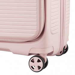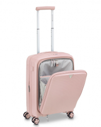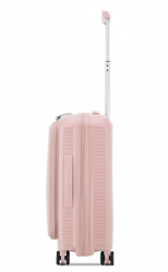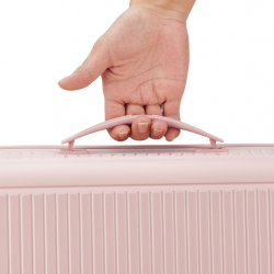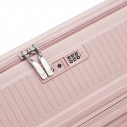 Чемодан изготовлен из полипропилена на 100% переработанного материала, который предлагает: максимальную ударопрочность, чрезвычайную прочность, оптимальную лёгкость, термостойкость. Оснащена 4 спаренными и маневренными колесами. Для удобства перемещения предусмотрена гибкая, подъемная пластиковая ручка на верхней и боковой панелях, а также телескопическая ручка. Безопасность и сохранность багажа обеспечивает встроенный кодовый замок с системой TSA. Среди наиболее ценных особенностей – инновационная система FLAT TOP: открывающаяся крышка на 90° вместо центрального отверстия. Дизайн разработан для уменьшения объема и облегчения доступа к содержимому.